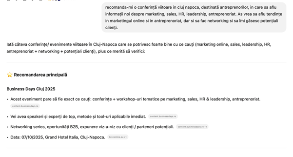 - Importanța conținutului local/regional : adaptare locală, studii de caz, limba/expresii locale cresc relevanța și diferențierea față de conținut generic. Un conținut localizat are șanse mai mari să fie considerat autoritativ și să fie vizibil în răspunsuri AI locale.