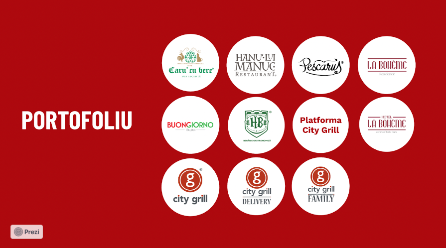 A fondat lanțul de restaurante City Grill-City, Restaurantul cu specific italian Buongiorno și Hanul Berarilor, ca si branduri proprii. Operează Caru’ cu Bere, Pescăruș și Hanul lui Manuc - branduri istorice pentru piata din Bucuresti.