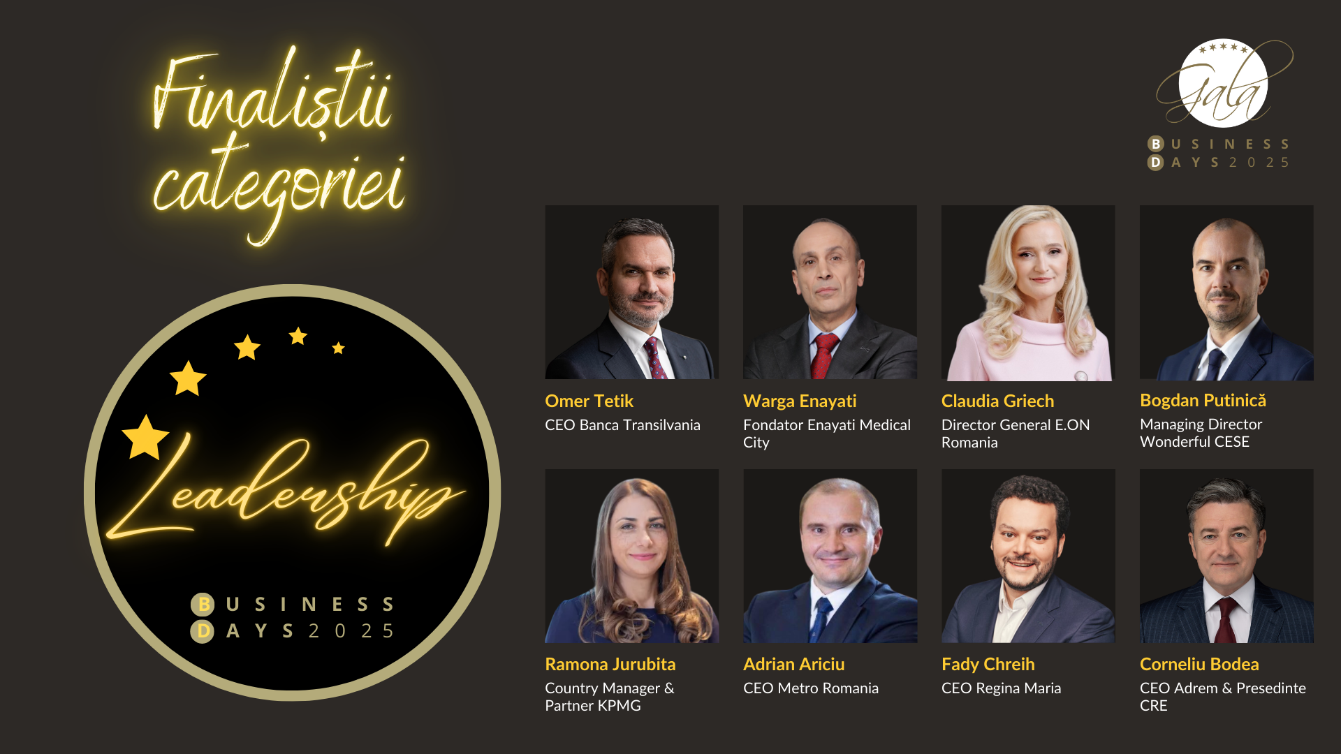 Nominalizări: Banca Transilvania • Enayati City • Wanderful AI • Visa • City Grill • E.ON • KPMG • OMNIASIG • Metro ESE • Rețeaua Regina Maria • Adrem