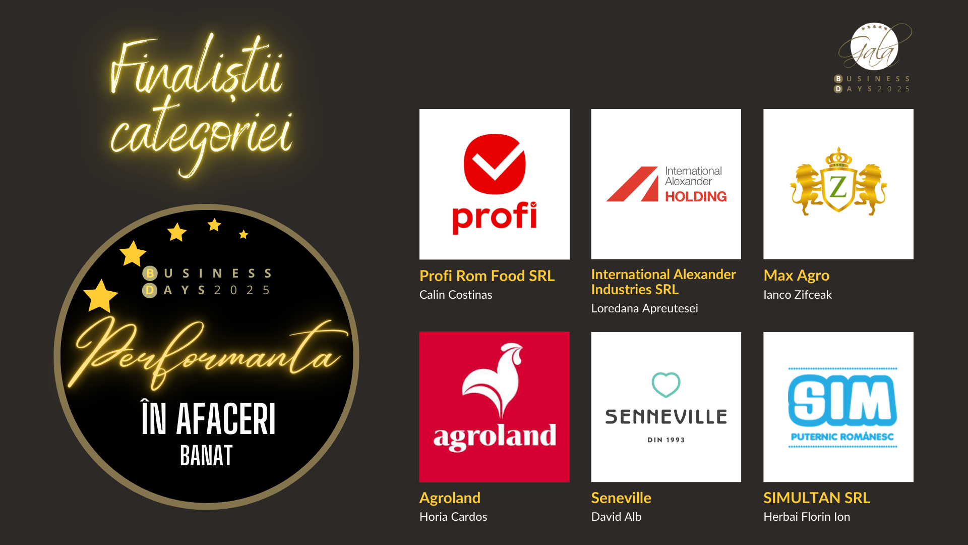 Profi Rom Food • International Alexander Industries • Max Agro • Agroland • Seneville • Prima Kapital Project • Simultan