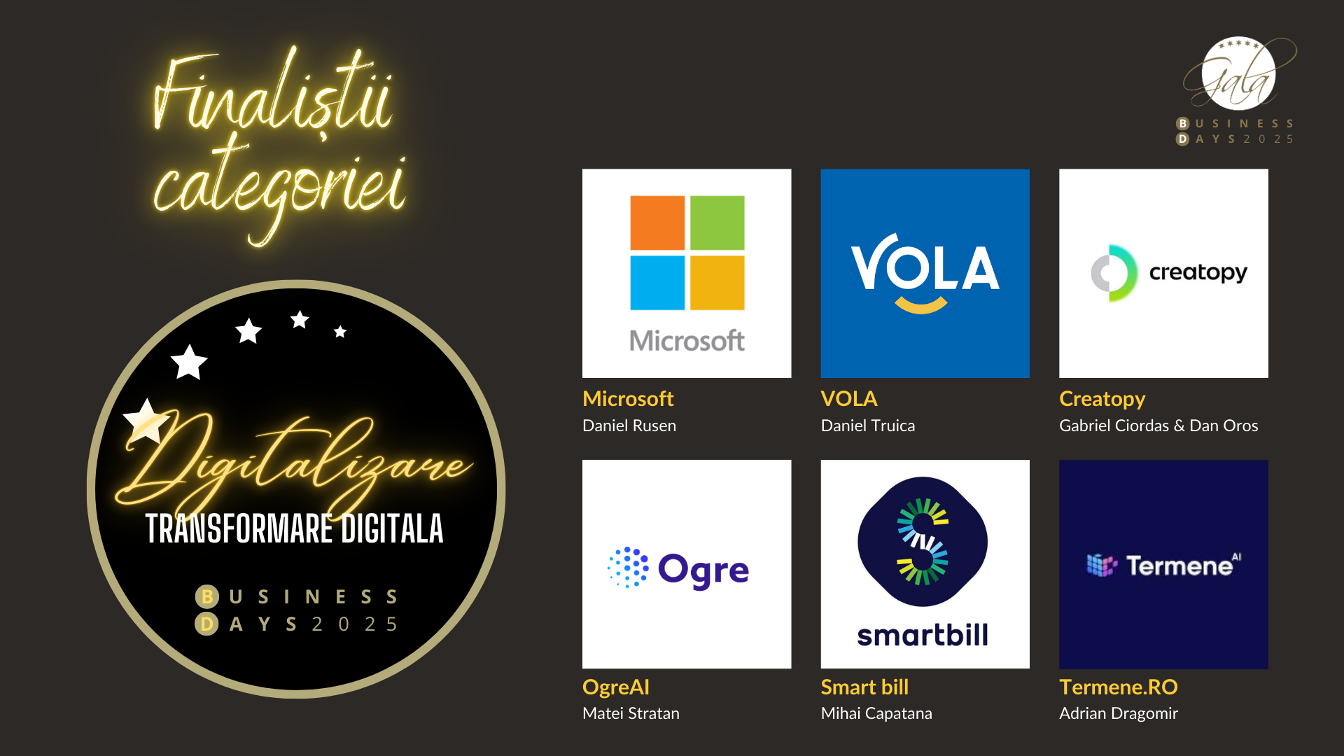 SAP • Tailent • Ogre AI • Digitail • Creatopy • SmartBill • Vola • Microsoft • Termene.ro
