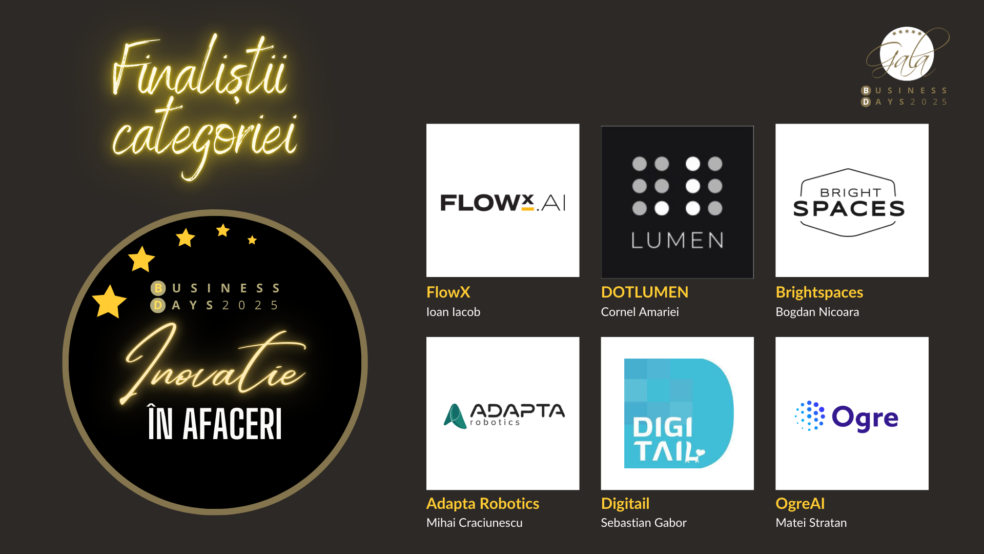 DotLumen • FlowX • Adapta Robotics • Digitail • Ogre AI • Brightspaces