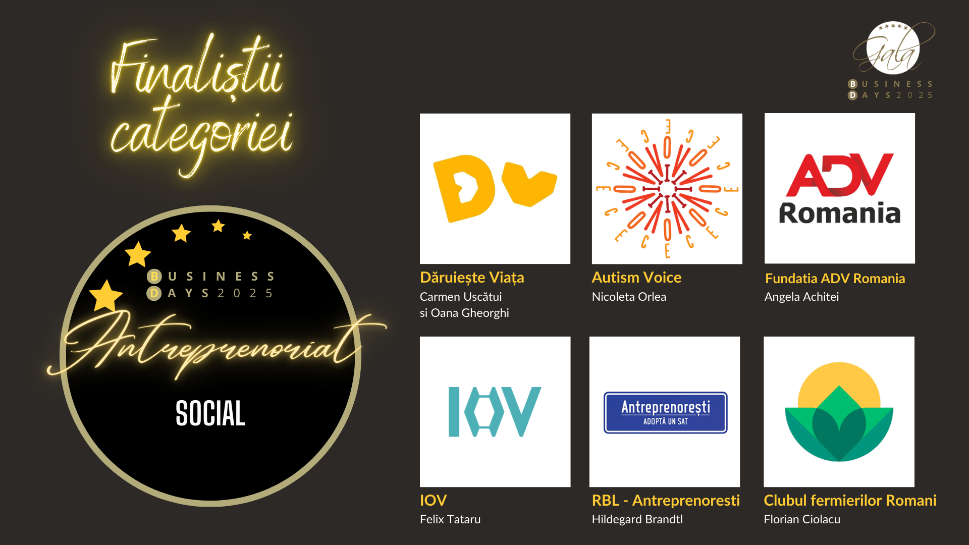 Dăruiește Viață • Autism Voice • Fundația ADV România • IOV • Antreprenorești – Adoptă un sat • Clubul Fermierilor Români