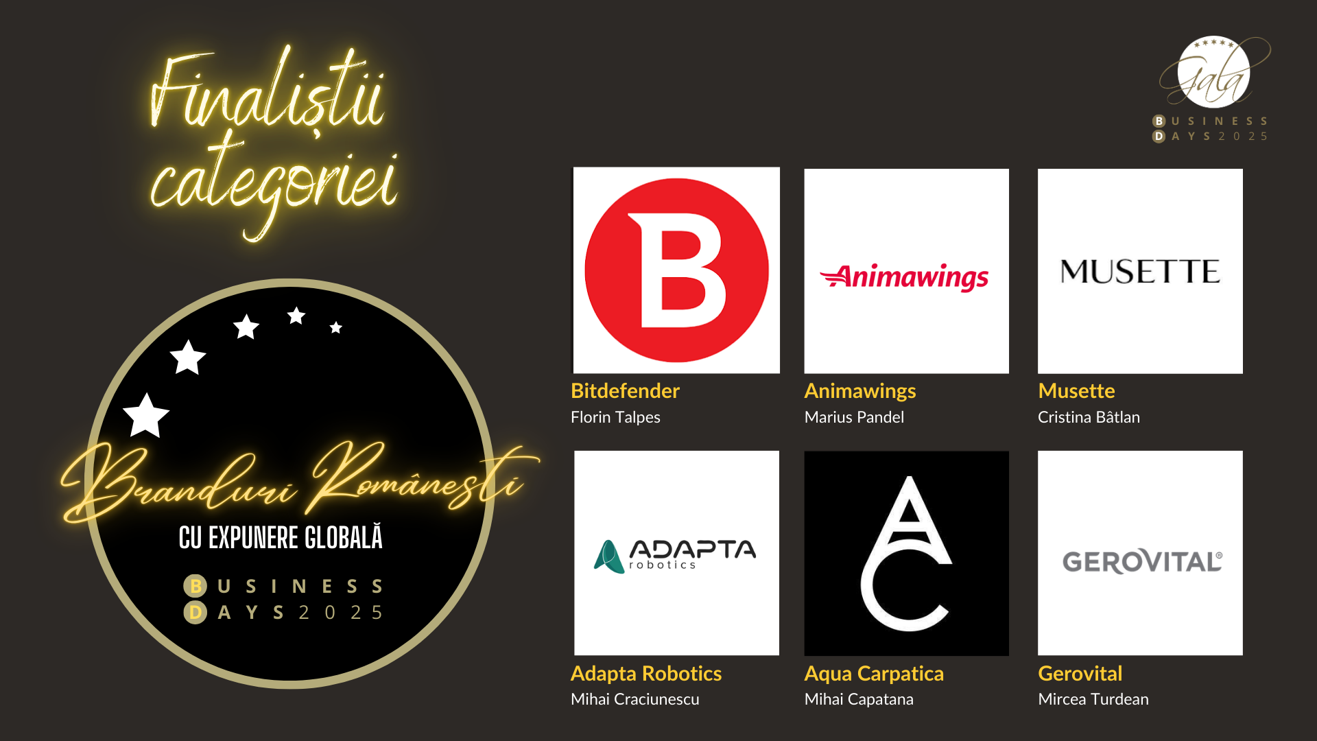 Bitdefender • Antibiotice • Aqua Carpatica • Gerovital • Musette • Ursus • Adapta Robotics