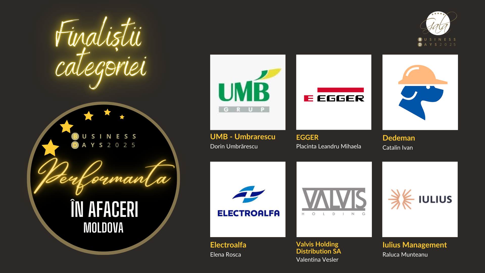 UMB – Umbrarescu • EGGER • Dedeman • Electroalfa • Valvis Holding Distribution • Iulius Management