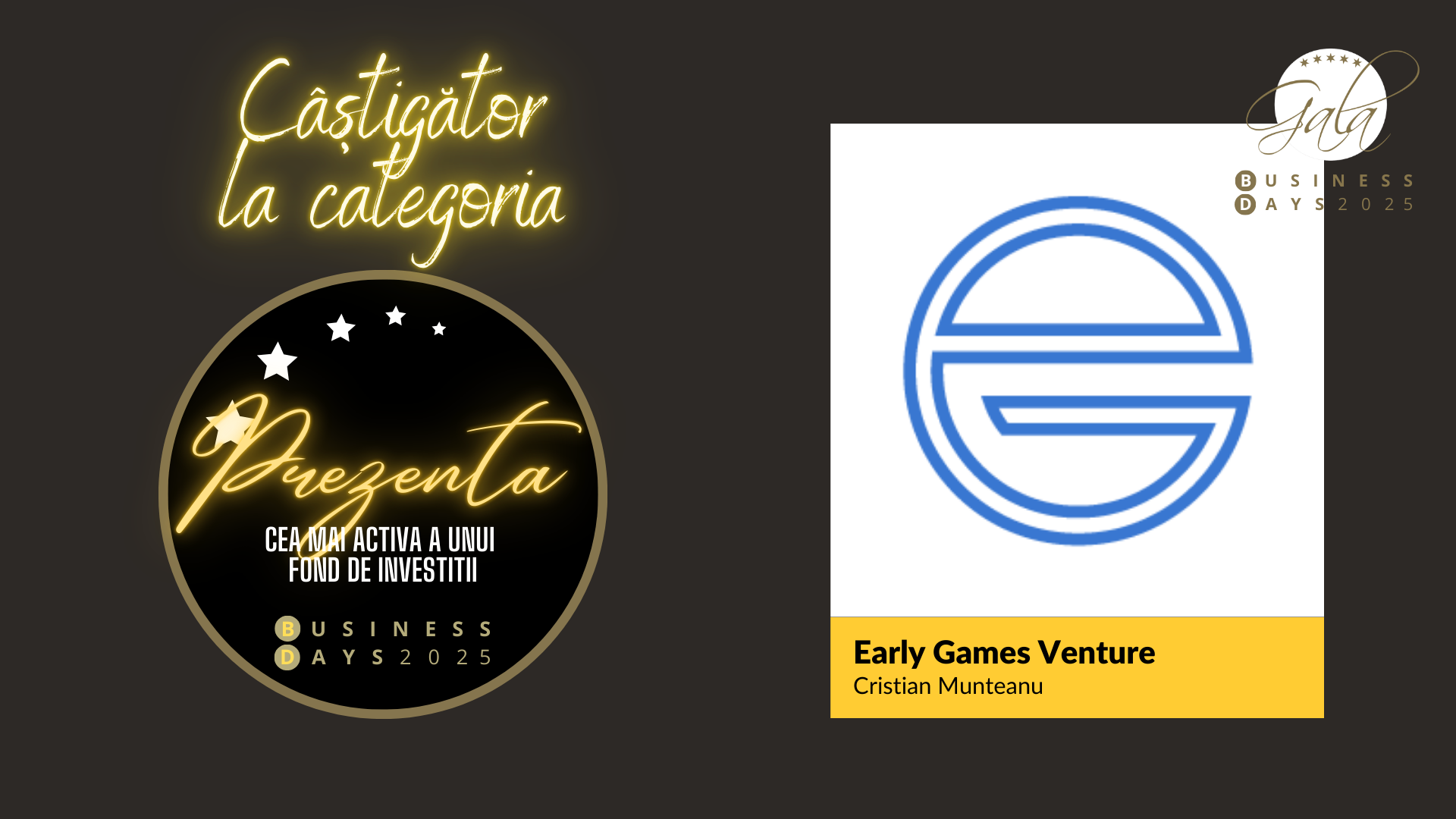 Câștigător: Early Game Ventures – Florin Visa, Partener