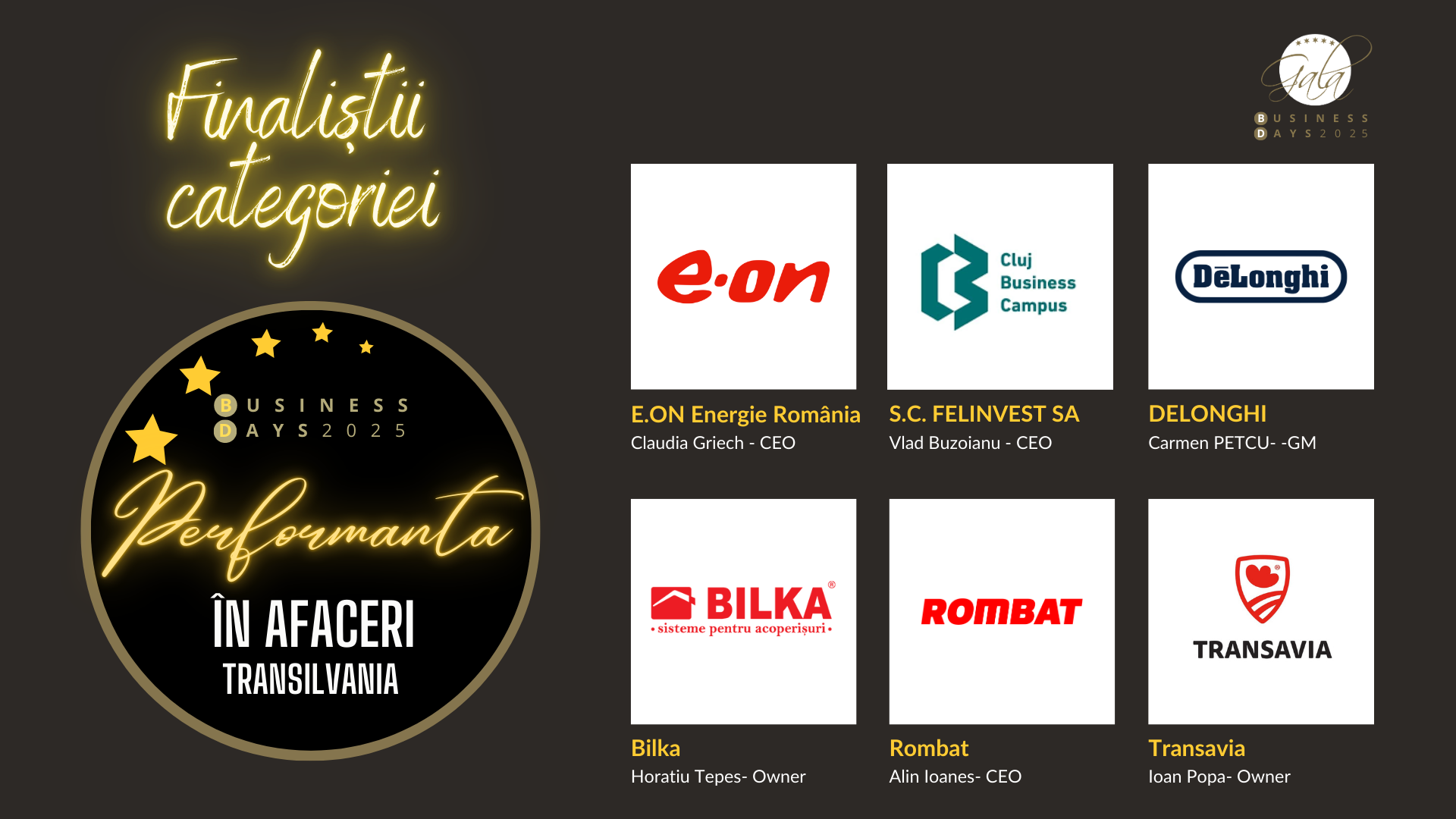 E.ON Energie România • De’Longhi • Bilka • Transavia • Cluj Business Campus - S.C. Felinvest S.A. • Rombat