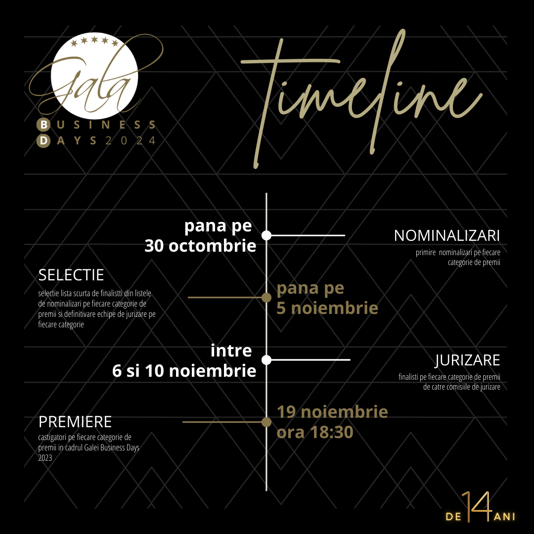 Gala Business Days este locul în care celebrăm performanța în mediul de afaceri românesc. Ne dorim să evidențiem și să premiem antreprenorii și managerii români care prin viziune, inovație, creativitate, ingeniozitate, leadership, excelență, comunicare transparentă, munca temeinică și perseverență au creat și conduc afaceri cu impact în economia și societatea româneasca, generează inspirație și produc schimbări în bine, acționează cu responsabilitate și sunt pionieri în transformarea digitală și in tehnologizarea universului în care își desfășoară activitatea și în care au ales să trăiască, să întemeieze o familie și să-și crească copiii, lăsându-le moștenire o lume mai bună.