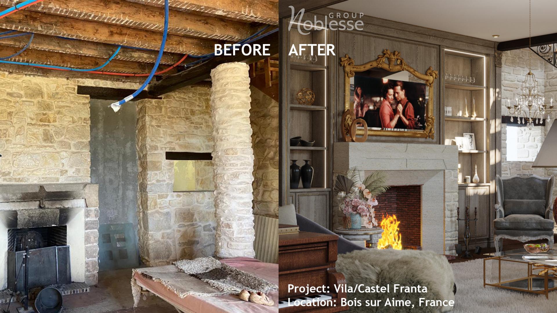 O restaurare cu succes este proiectul Castelul din Franța, unde au fost amenajate livingul, bucătăria, trei dormitoare, un dressing, un birou și o zona cu saună. O altă parte restaurată și redecorată este crama – un loc cu totul special, un spațiu destinat poveștilor și vinurilor bune. Materialele integrate in designul interior, de la finisaje, până la piesele de mobilier au fost alese cu minuțiozitate, din portofoliul Noblesse Interiors.