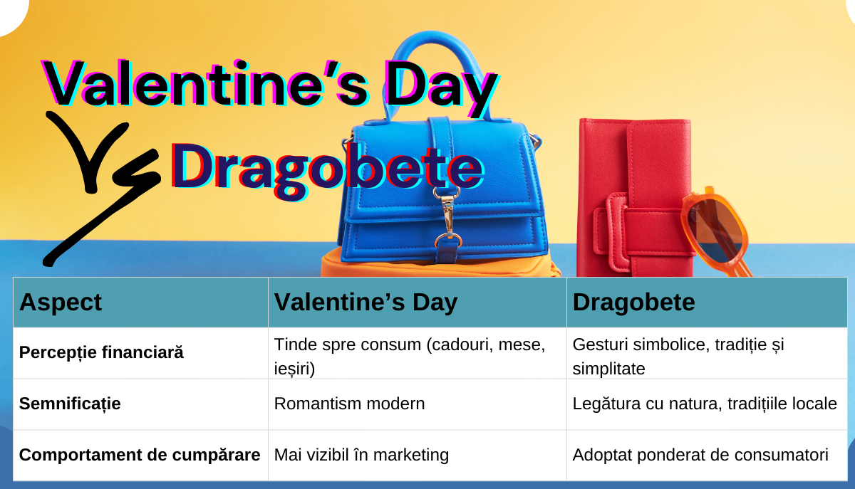 Valentine’s Day este adesea asociată cu așteptări legate de cadouri, declarații publice și experiențe planificate, pe când Dragobetele rezonează cu ideea de iubire simplă, autentică și tradițională, fără presiune financiară.